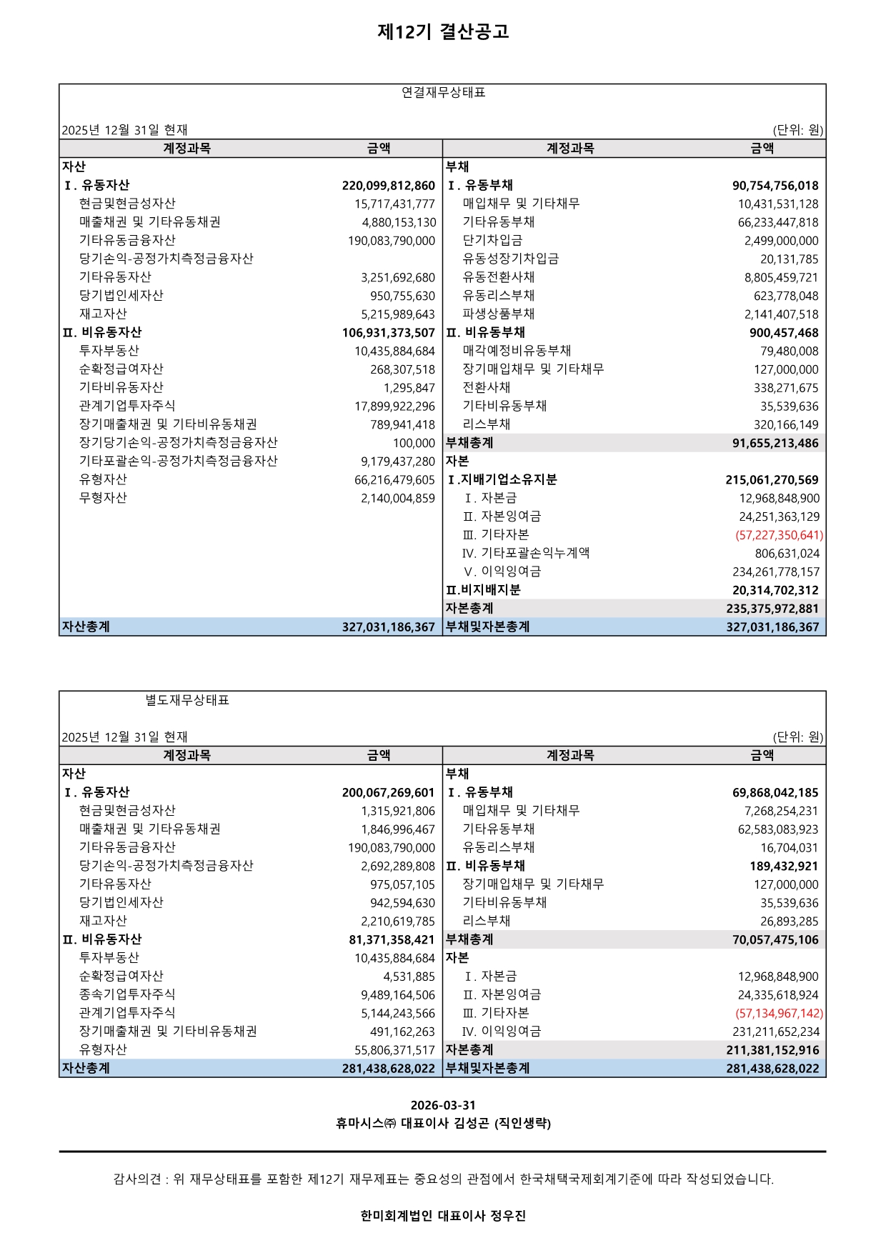 제12기(2025년) 결산공고